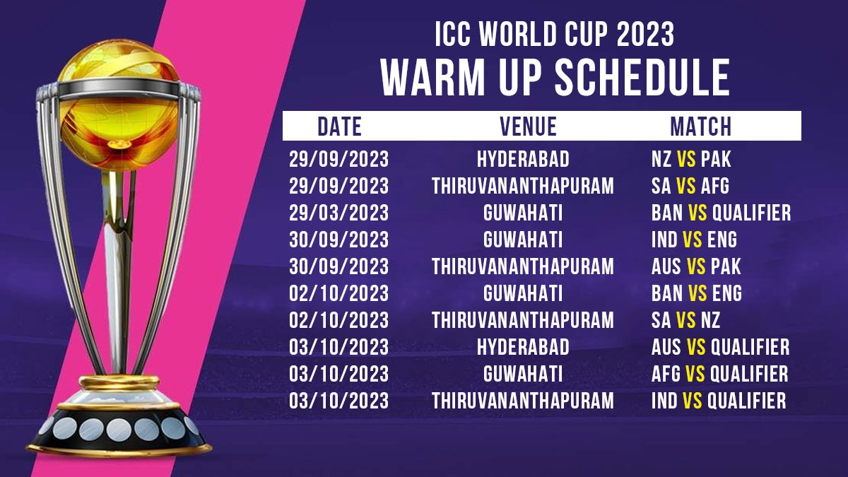 The schedule of official practice matches for all 10 teams of ICC Cricket World Cup 2023 has been announced.