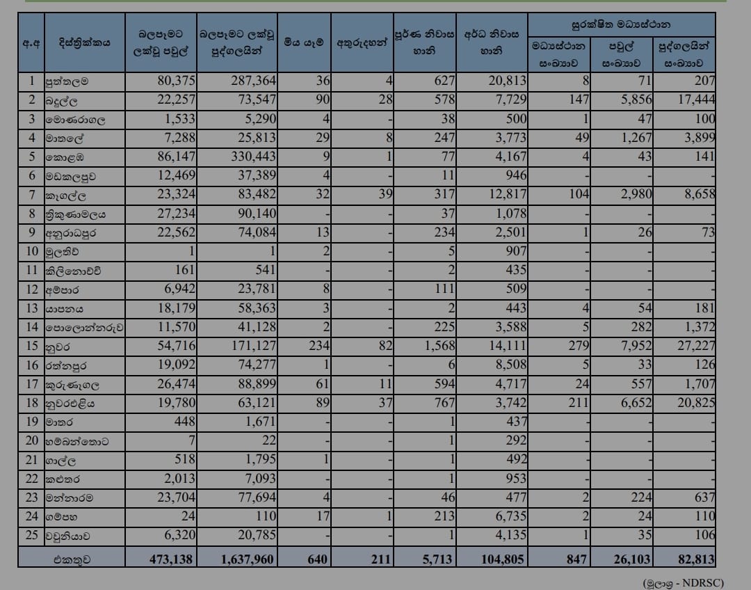 එමෙන්ම සමස්ත දිවයිනේම නිවාස 5713ක් සම්පූර්ණයෙන්ම විනාශ වී තිබෙනවා.