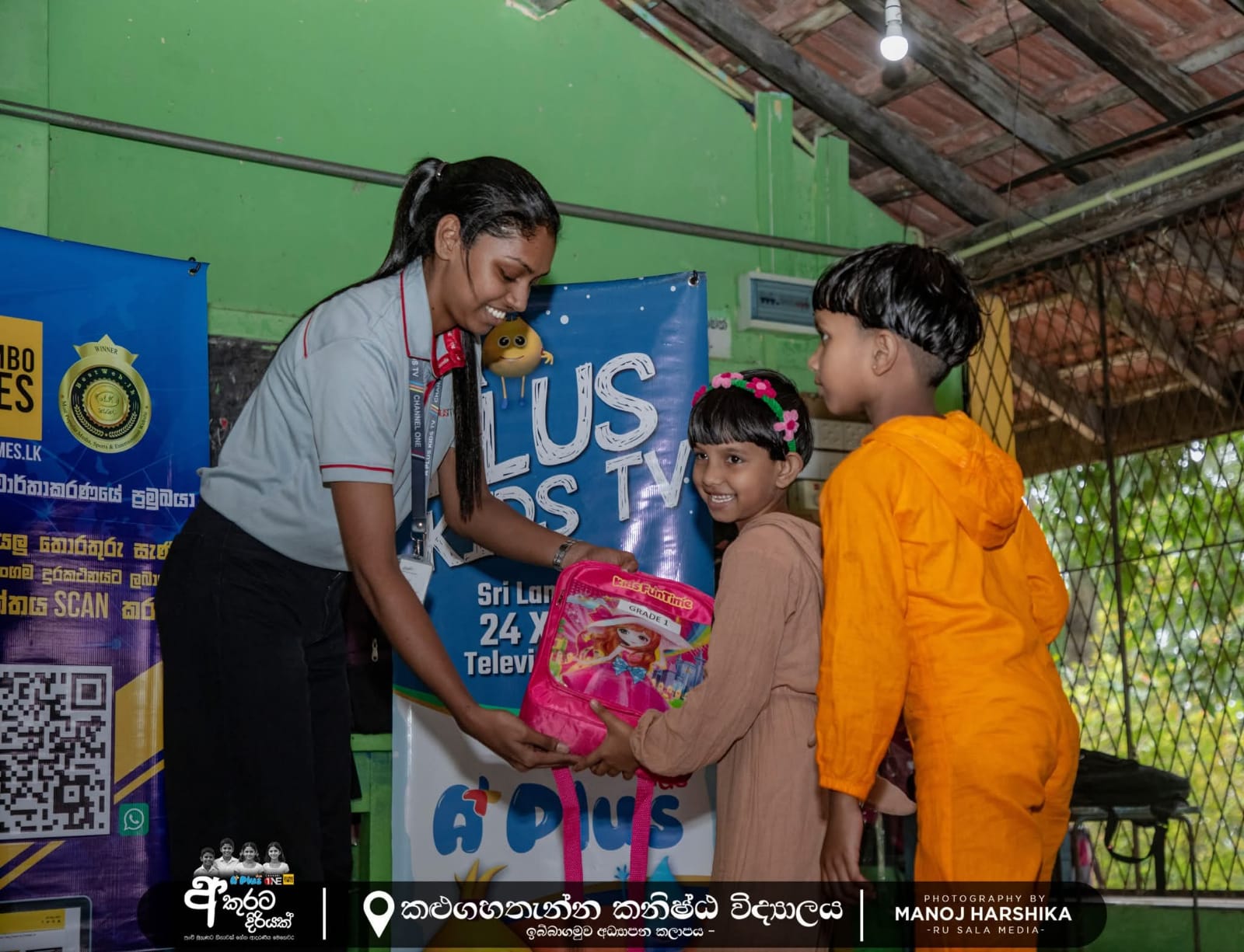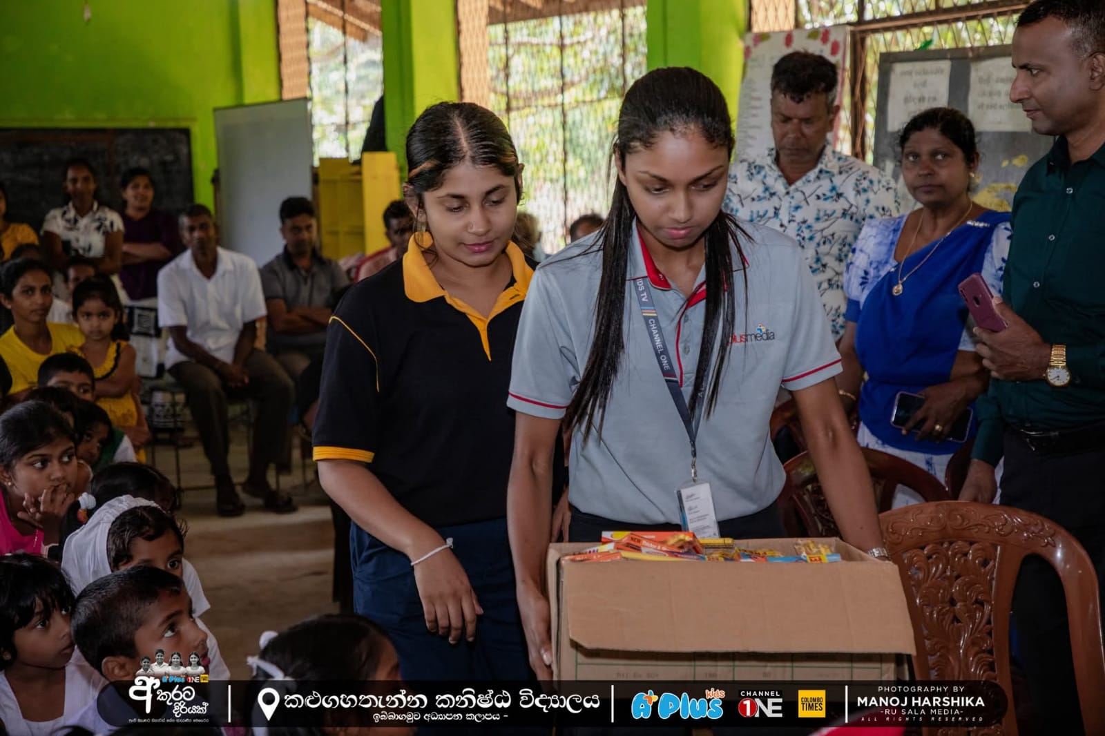 Colombo Times, Channel One සහ A plus Kids TV අපි හැමෝම එකතුවෙලා ඔබේ සෙනෙහස දරුවන්ගේ අතටම පත්කරා වගේම ඇත්තටම සහනයක්, දිරියක් ලෙස පරිත්යාගයක් ලබාදෙන්නෙ කොහොමද කියලත් රටට උගන්නන්න ජනවාරි මස 05වනදා කළුගහතැන්න ප්රාථමික විද්යාලයේ දරුවන් වෙනුවෙන් ක්රියාත්මක වූ 'අකුරට දිරියක්' ක්රියාන්විතය හරහා අපිට හැකිවුණා.