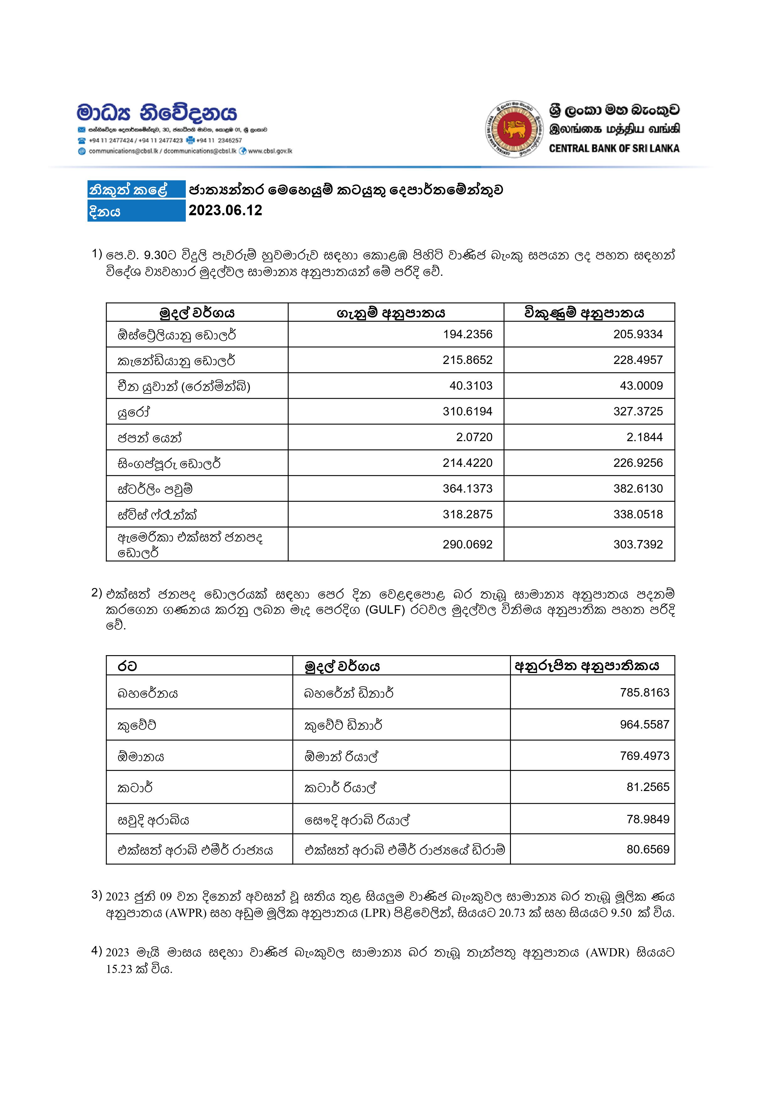 එක්සත් ජනපද ඩොලරයට සාපේක්ෂව ශ්රී ලංකා රුපියල අද දිනට පෙන්නුම්කළ අනුපාතයන් පහතින්.,