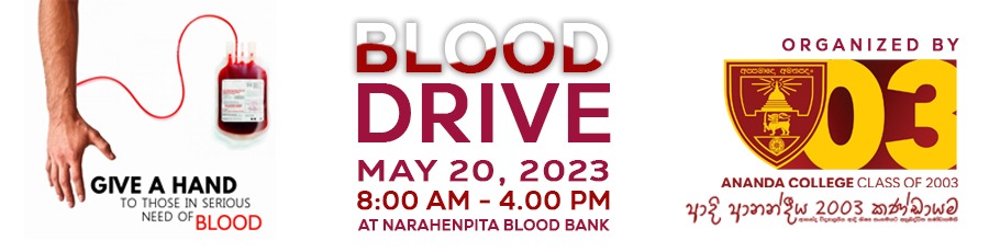 Colombo Times මාධ්ය අනුග්රහයෙන්, කොළඹ ආනන්ද විද්යාලයේ 2003 කණ්ඩායම විසින් ලේ දන්දීමේ වැඩසටහනක් සංවිධානය කර තිබෙනවා.