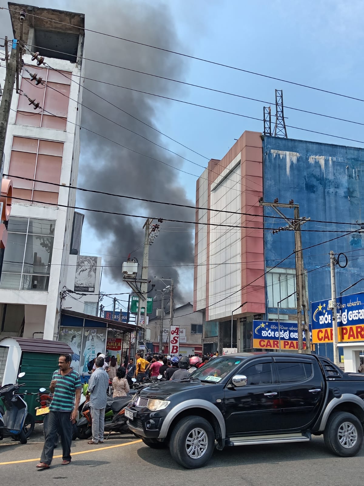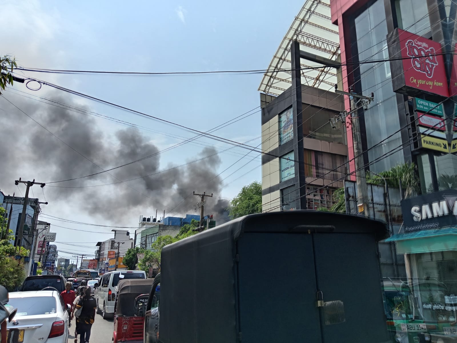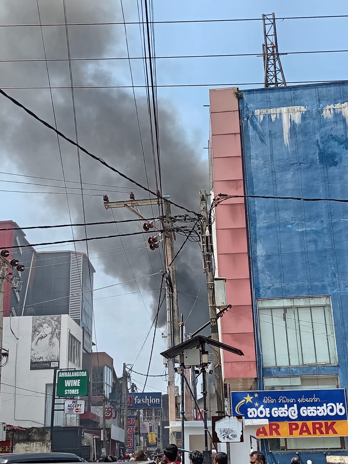 අම්බලන්ගොඩ නගර මධ්යයේ වෙළඳසැලක අද (09) පෙරවරුවේ ගින්නක් හටගෙන තිබෙනවා. එහි දර්ශන කිහිපයක් පහතින්,