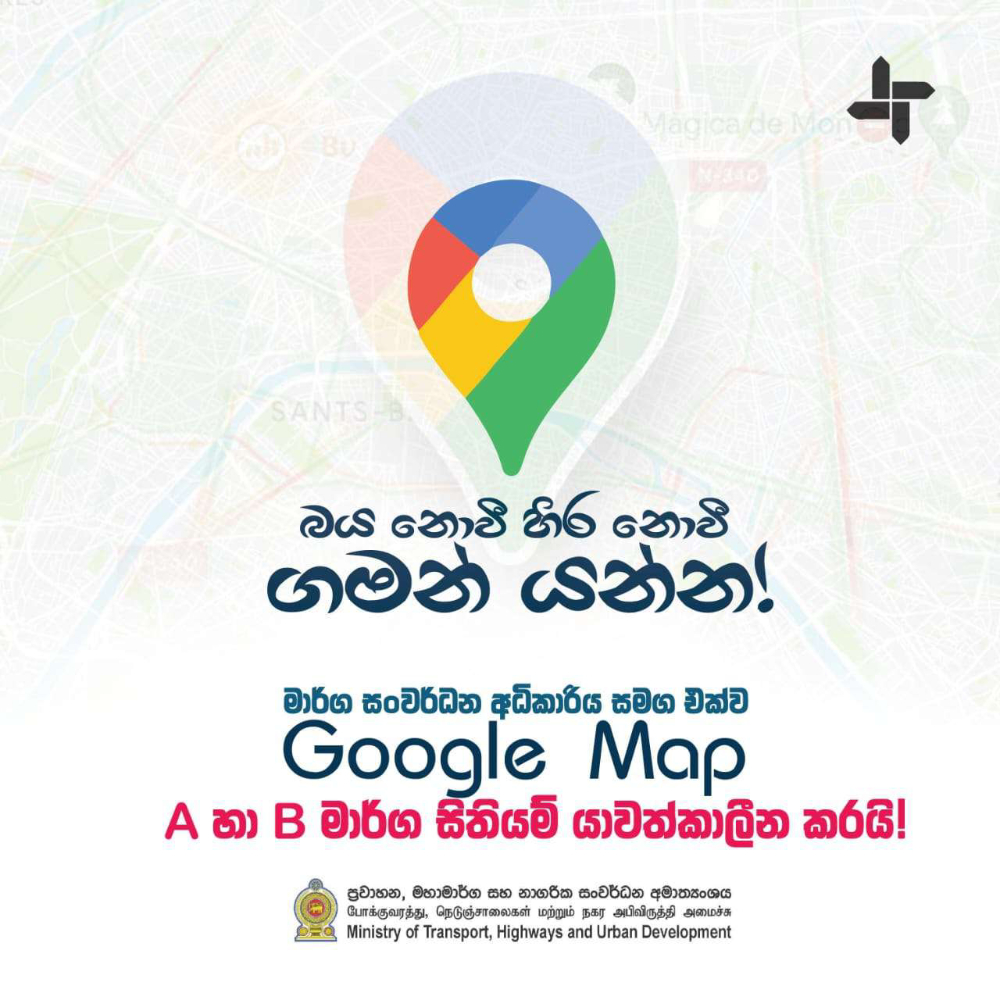 මාර්ග සංවර්ධන අධිකාරීය සමඟ එක්ව Google Map මෙරට A හා B මාර්ග සිතියම් යාවත්කාලීන කර තිබෙනවා.නිවේදනයක් නිතුත් කරමින් ප්රවාහන හා මහාමාර්ග අමාත්යාංශය මේ බව සඳහන් කළා. (colombotimes.lk)