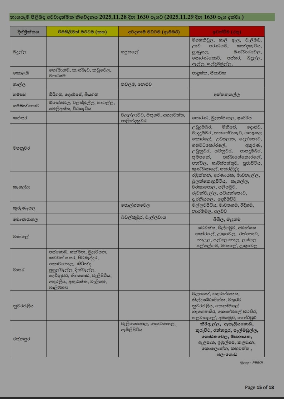 පවතින අයහපත් කාලගුණික තත්ත්වය හේතුවෙන් ජාතික ගොඩනැගිලි පර්යේෂණ සංවිධානය විසින් නිකුත් කළ නායයෑම් අනතුරු ඇඟවීම් නිවේදන තවදුරටත් දීර්ඝ කර තිබෙනවා.එම නිවේදනය පහතින්, (colombotimes.lk)