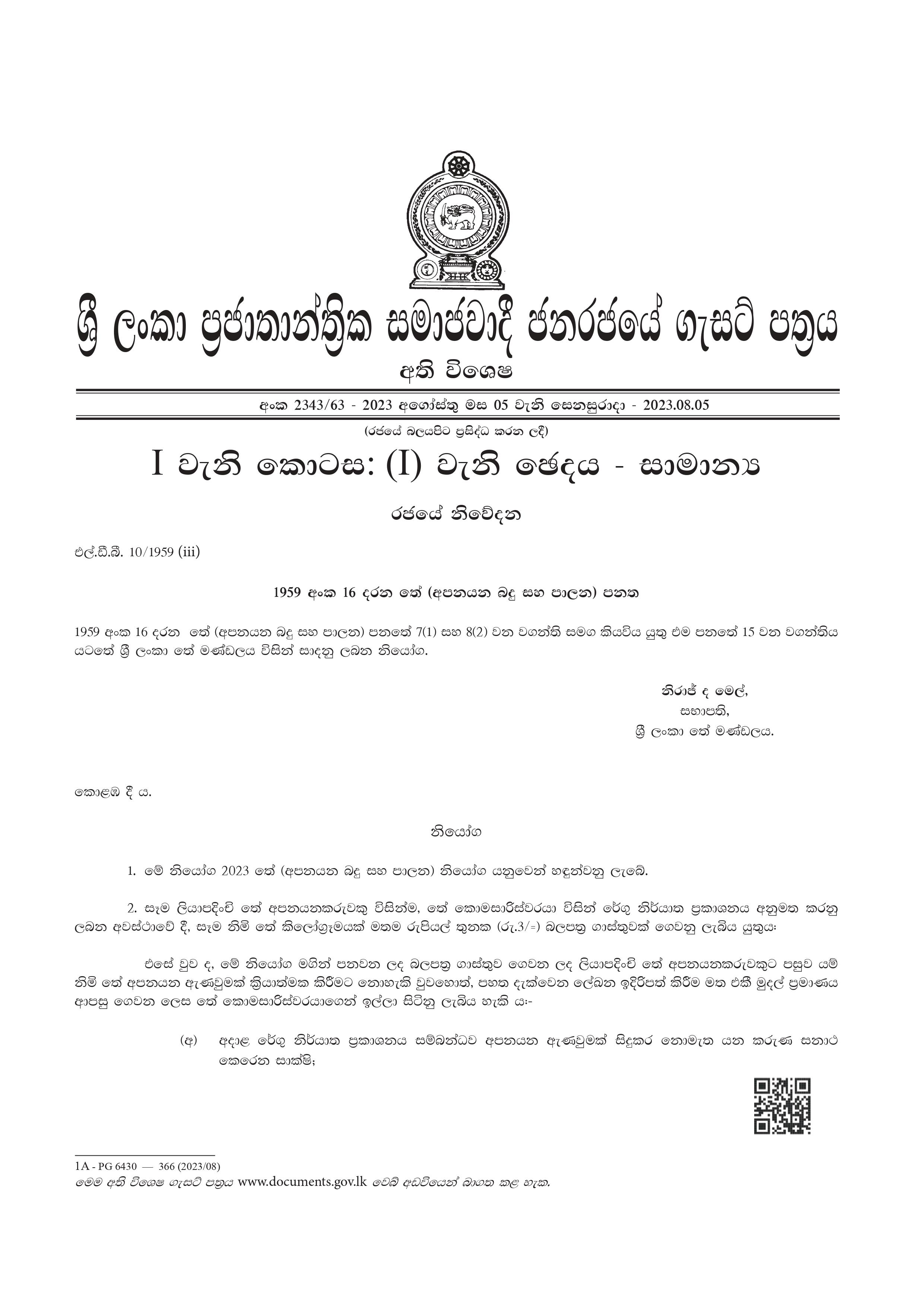 අදාළ සම්පූර්ණ ගැසට් නිවේදනය පහතින්...