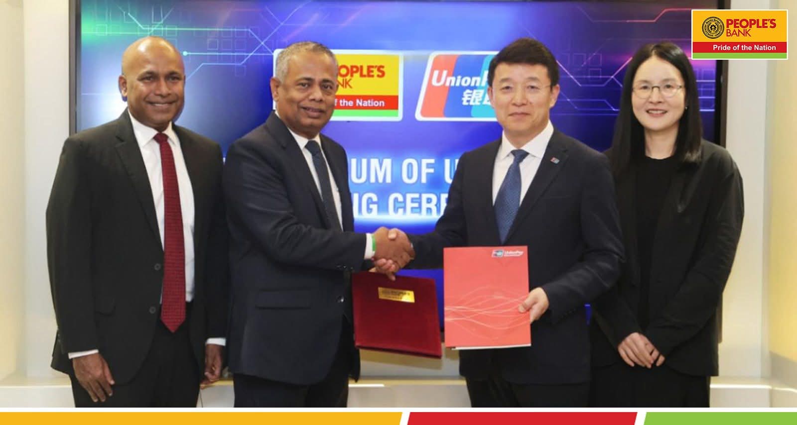 චීන යුනියන්පේ සභාපති ඩොං ජුන්ෆෙන්ග් මහතා, මහජන බැංකුවේ සභාපති මහාචාර්ය නාරද ප්රනාන්දු මහතා සහ ආයතන දෙකෙහිම ජ්යෙෂ්ඨ නායකත්වයන් ඉදිරියේ කොළඹදී මෙම අවබෝධතා ගිවිසුමට අත්සන් තබා තිබෙන බවයි වාර්තා වාර්තා වන්නේ.