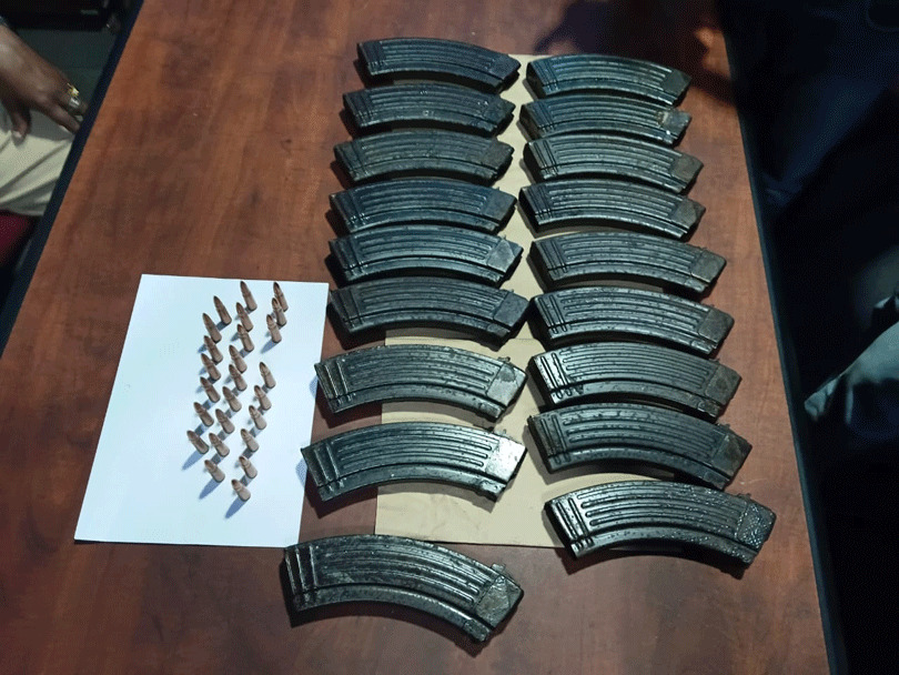 එම සැකකරු සන්තකයේ තිබී ටී 56 මැගසින් 18ක් සහ ටී 56 උන්ඩ 25ක් පොලිස් භාරයට ගත් බව පොලීසිය සඳහන් කළා.
