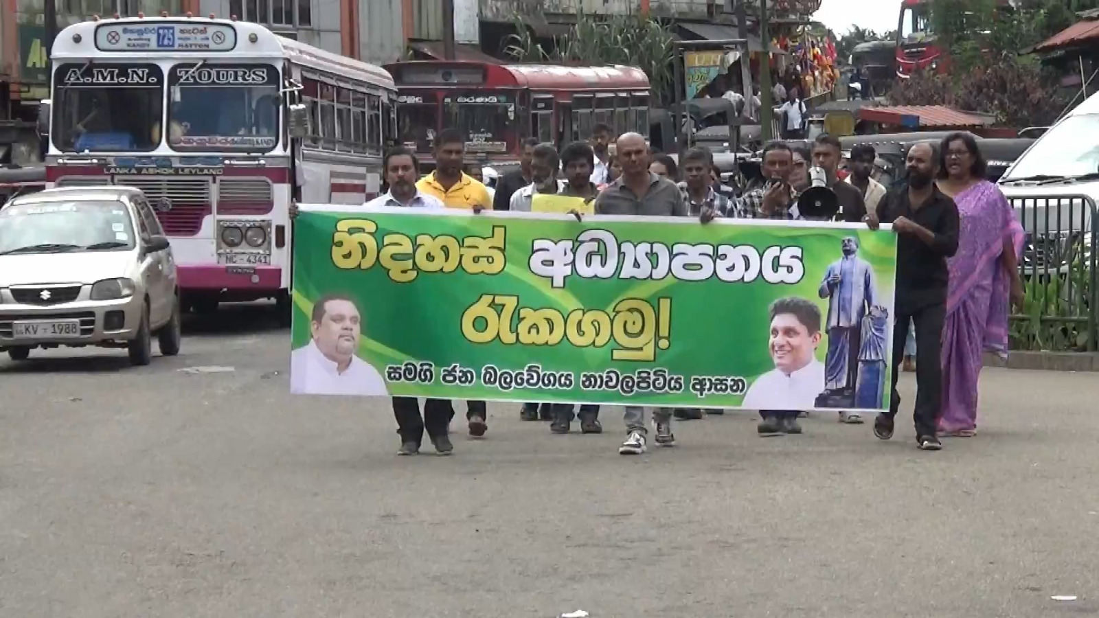 සජබ ආධාරකරුවන් පිරිසක් අද (14) උද්ඝෝෂණයක නිරතවී තිබෙනවා.ඒ නාවලපිටිය නගර මධ්යයේදීයි.නව අධ්යාපන ප්රතිසංස්කරණය සහ දරුවන්ට නුසුදුසු මොඩියුල ඇතුළත් කිරීම මෙන්ම විදුලිබිල ඉහළ නැංවීම යන කරුණුවලට එරෙහිව මෙම උද්ඝෝෂණය දියත් කර තිබෙනවා.(colombotimes.lk)