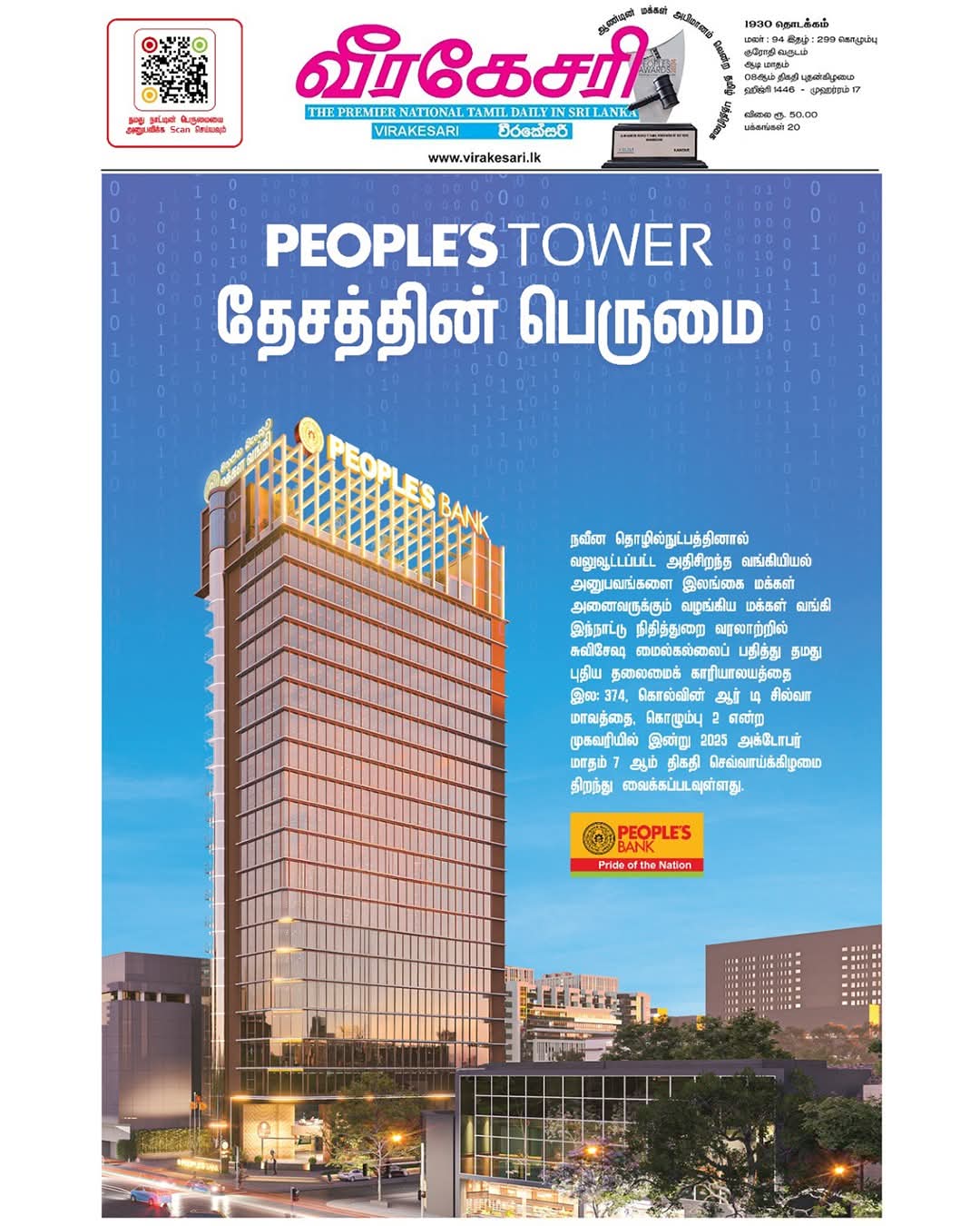 මහජන බැංකුවේ 'අහිමානය People's Tower' විවෘතවීම සම්බන්ධව ප්රධාන ජාතික පුවත්පත්වල මුල් පිටුවෙහි පළ කළ දැන්වීම් පහතින්,
