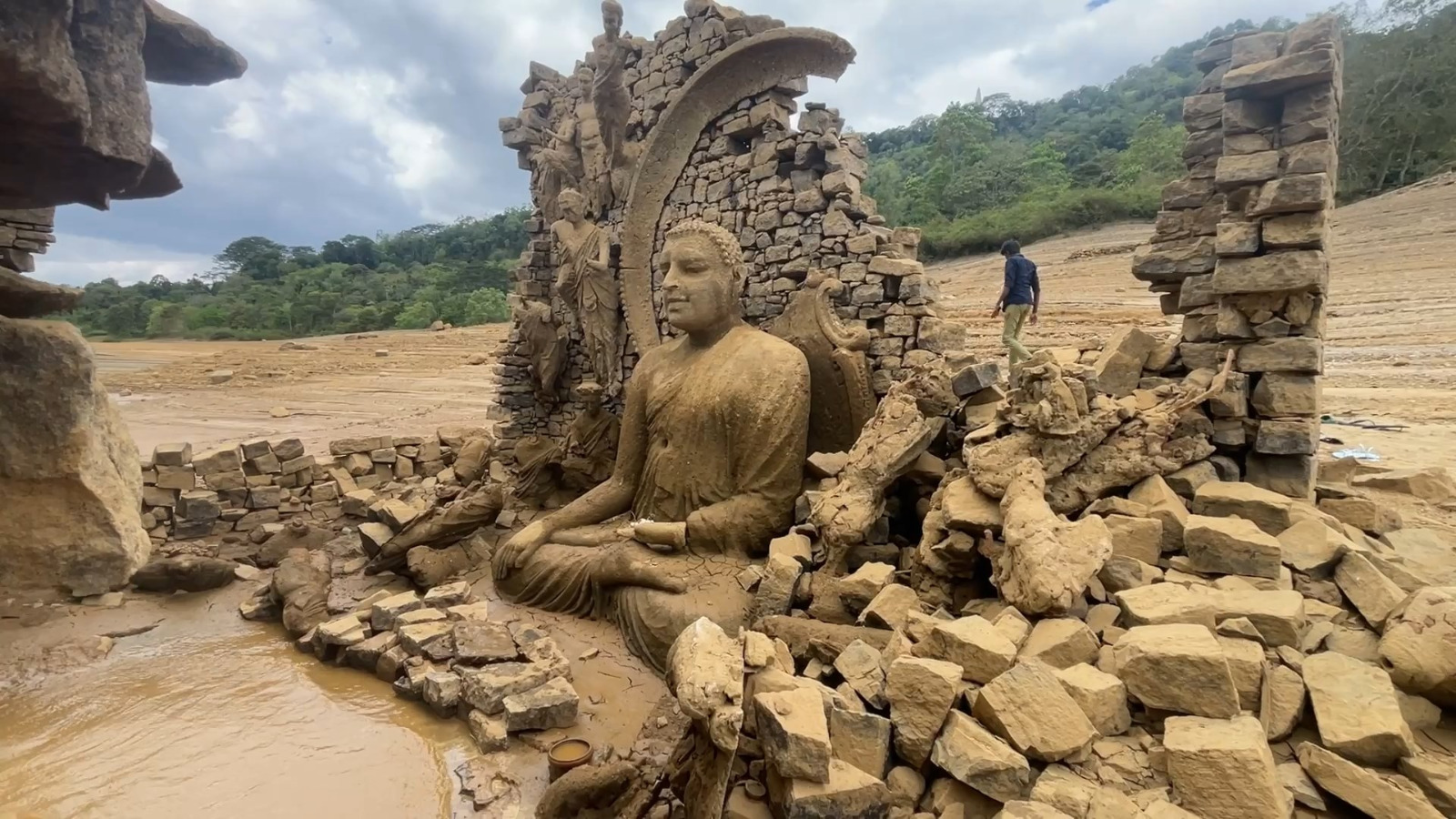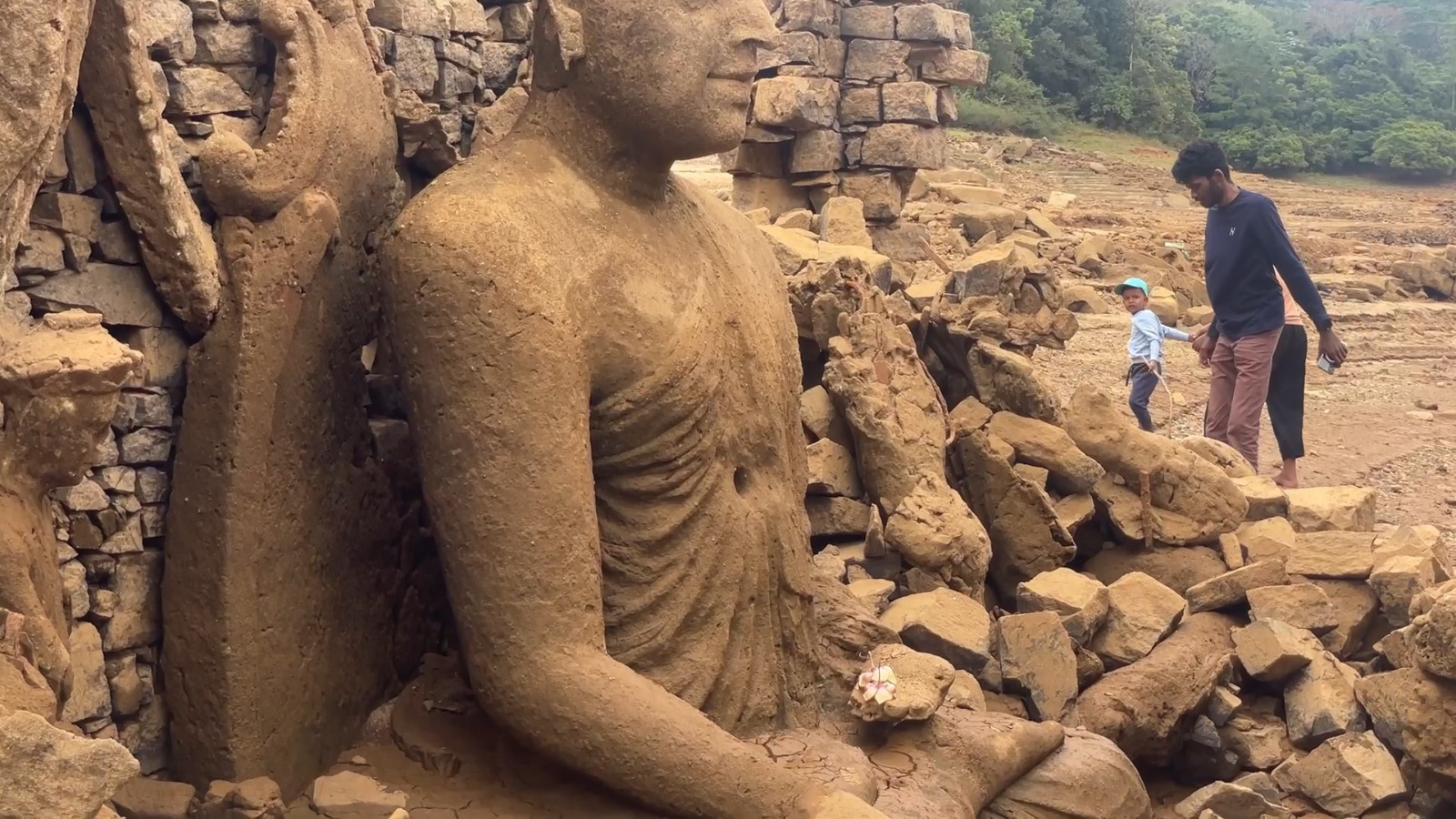 දිට්වා සුළි කුණාටුවෙන් පසු කොත්මලේ ගාමිණි දිසානායක ජලාශයේ ජල මට්ටම සීඝ්රයන් පහළ බැසීමත් සමඟ ජලාශය ඉදි කිරිමේදී යට වූ කඩදොර විහාරස්ථානයේ නටඹුන් මතු වී තිබෙනවා.