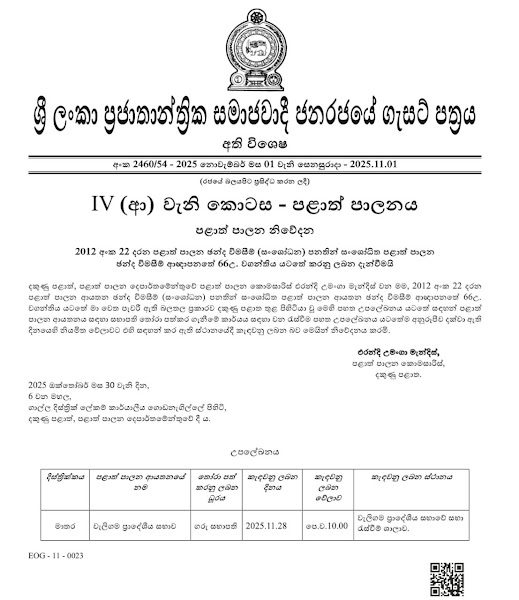ඊට අදාළ ගැසට් නිවේදනය මේ වන විට නිකුත් කර තිබෙන බවයි වාර්තා වන්නේ.
