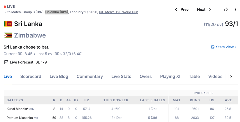 සිම්බාබ්වේ කණ්ඩායමට එරෙහිව මේ වන විට පැවැත්වෙන තරගයේදී වේගවත් අර්ධ ශතකයක් වාර්තා කිරීමට පැතුම් නිස්සංක සමත්වුණා. මෙය වාර්තා වුණේ ඔහුගේ 19වන ජාත්යන්තර T20 අර්ධ ශතකය ලෙසයි.