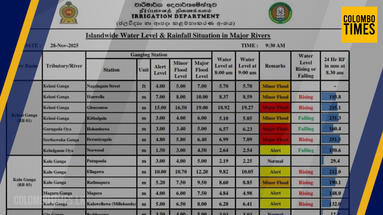 කැලණි ගංගා ද්රෝණියේ ප්රදේශවලට අධි අවදානම් ගංවතුර අනතුරු ඇඟවීම්
