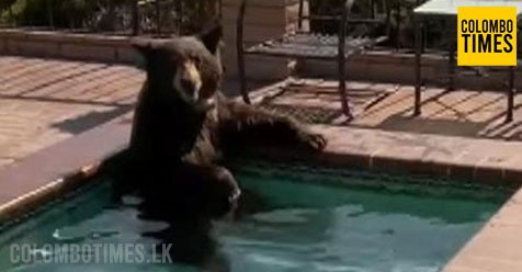 කළු වලසෙක් දිය නෑමට පිහිනුම් තටාකයකට පනියි (VIDEO)